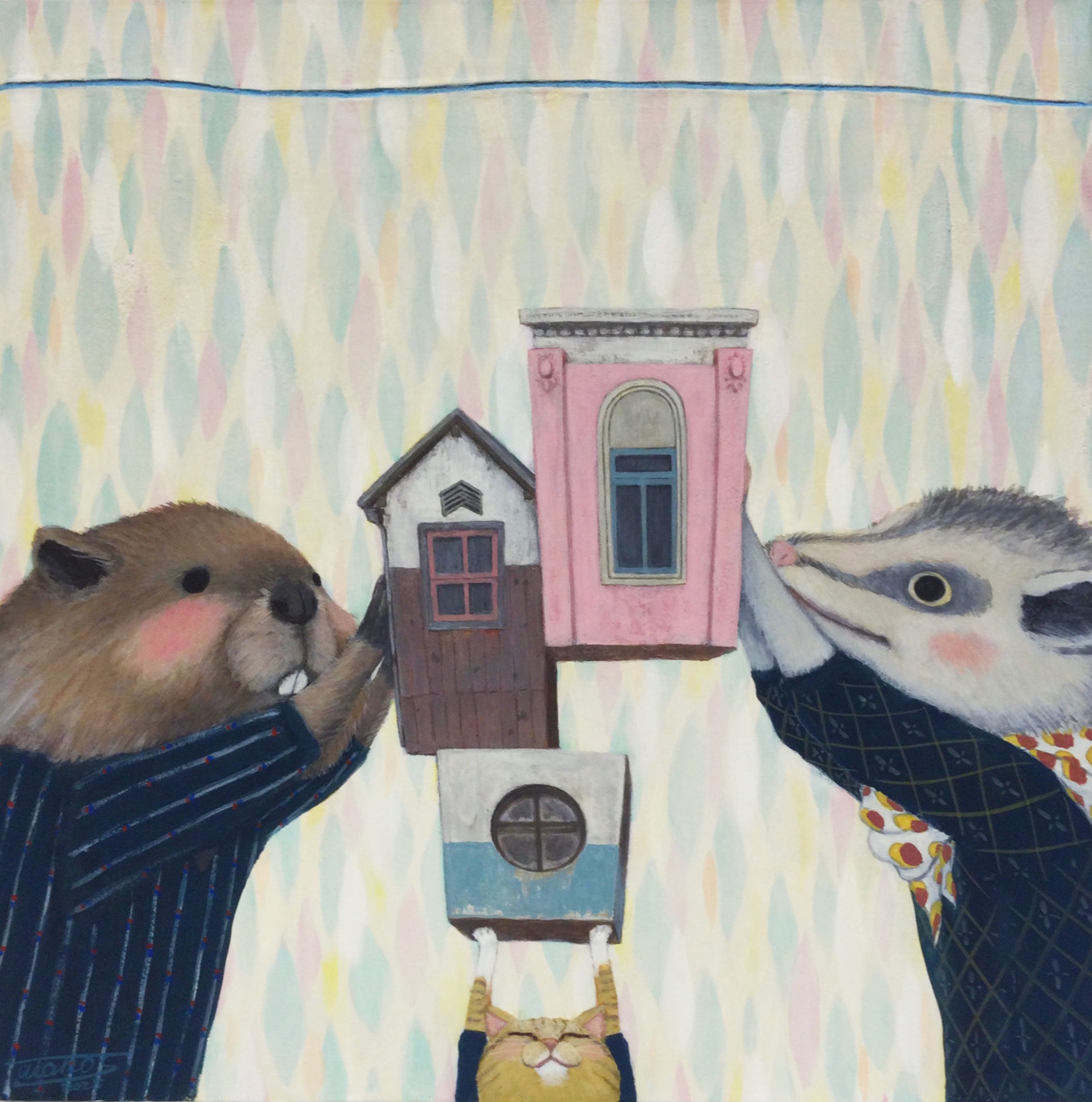 I express visions inspired by ordinary daily life, where animals happily coexist and warm feelings of nostalgia prevail. I hope viewers will cherish their imagination, which is often overlooked in today's fast-paced world, and the time they spend relaxing. Through my work, I encourage them to freely imagine the stories that lie beyond the artwork.