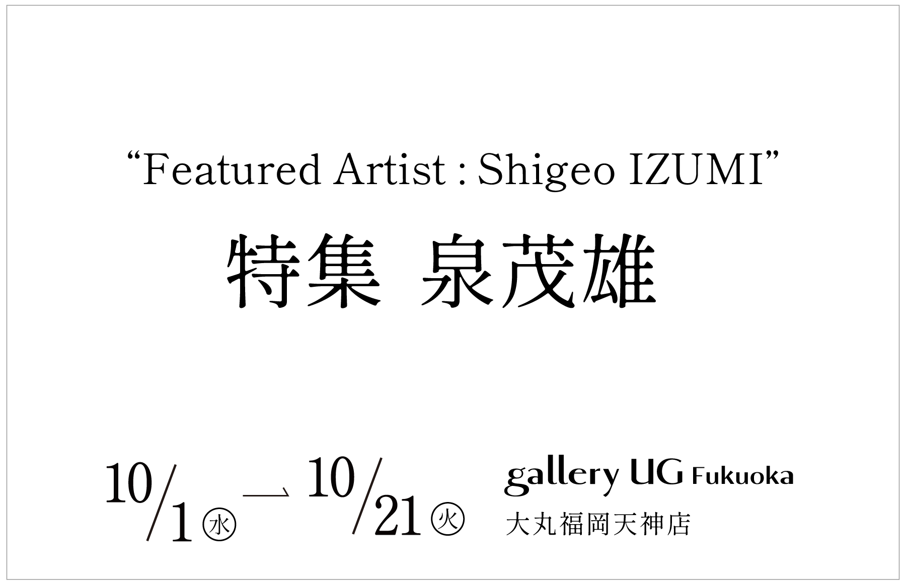 gallery UG is pleased to present “Featured Artist: Shigeo Izumi” from October 1 (Wed) to October 21 (Tue), 2025 at gallery UG Fukuoka, located in Daimaru Fukuoka Tenjin.
