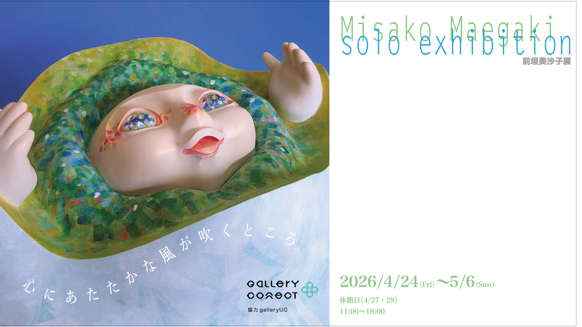 本展では、前垣美沙子の新作を中心に、その表現の広がりをご紹介いたします。